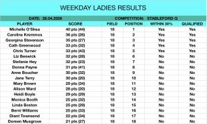 14.04.2026 – Weekday Ladies Stableford Q Results